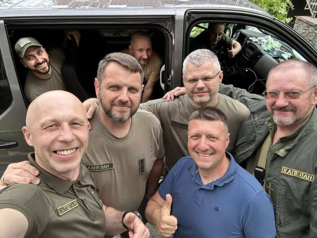 Vyacheslav Lesik came to Christ as a young adult from a non-believing family.  The Lord quickly called him into full-time Christian ministry and after seminary, he became an assistant pastor at the church where he repented and was baptized in Kyiv.  After the full-scale invasion of Ukraine, he became the head pastor of his church as most of the congregation and pastoral staff evacuated to Germany.  He now leads a congregation of mostly displaced Ukrainians from frontline cities and is an active volunteer chaplain who regularly ministers to wounded soldiers and active servicemen.  He and his wife evacuated their teenage children to the United States to be able to serve in Kyiv freely.  Pictured here serving soldiers in basement bomb shelters and with other chaplains we support!